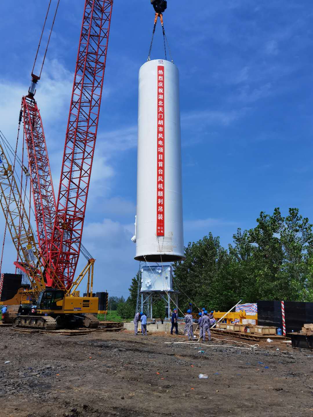 熱烈慶祝湖北天門胡市風電項目首臺風機順利吊裝