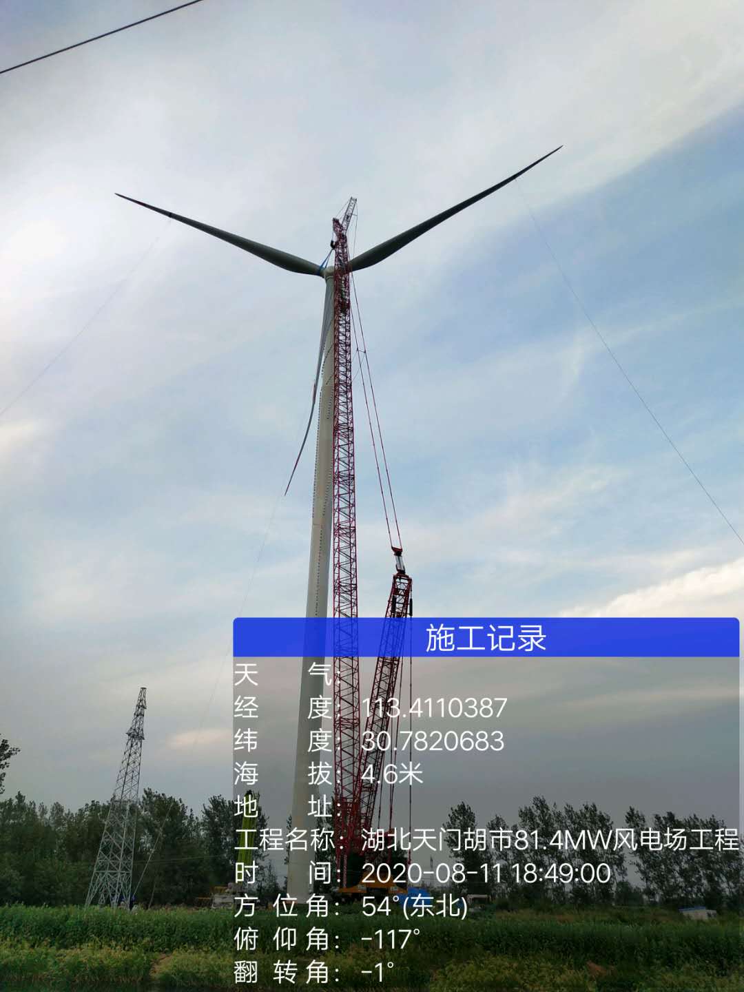 四川同創湖北項目:天門謝家塆風電項目首臺風機安裝完成